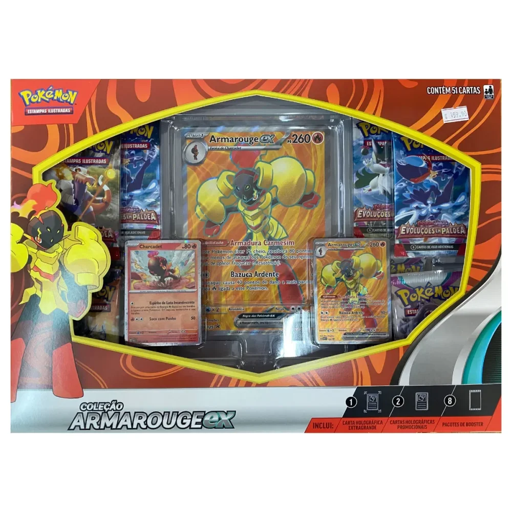 Armarouge ex aparece aqui como uma carta holográfica promocional com textura especial jogável e uma carta extragrande para adicionar à sua coleção, ao mesmo tempo que Charcadet põe ainda mais lenha na fogueira como uma carta holográfica promocional.