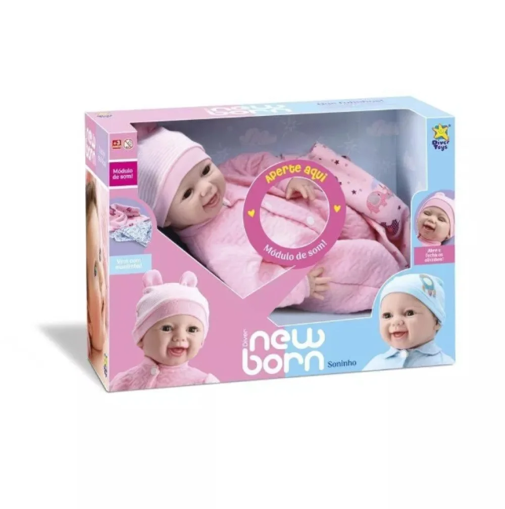 a boneca diver new born soninho menina olho móvel da divertoys é ideal para crianças acima de 3 anos.