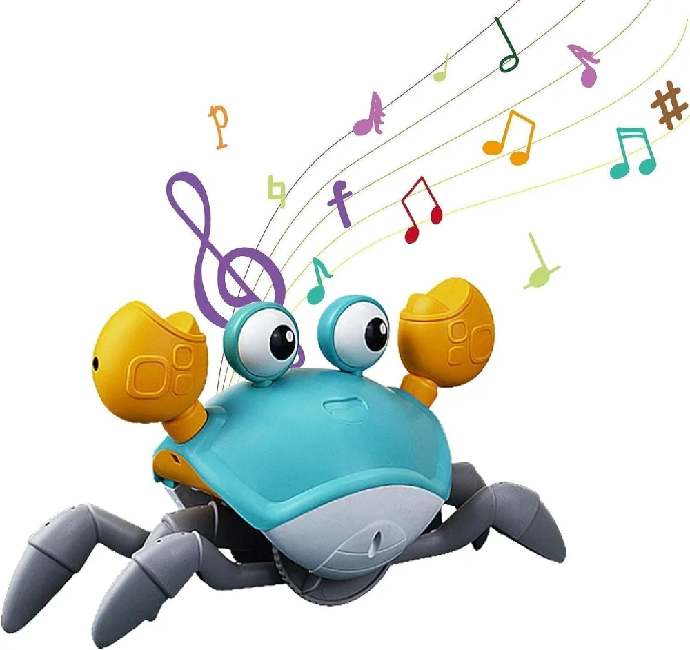 Ele é feito de materiais de alta qualidade e é seguro para brincar. Ele é equipado com sensores de movimento que o faz se mover de forma autônoma, desviando de obstáculos e objetos em seu caminho. O caranguejo ainda toca música enquanto se move, tornando a brincadeira ainda mais divertida.