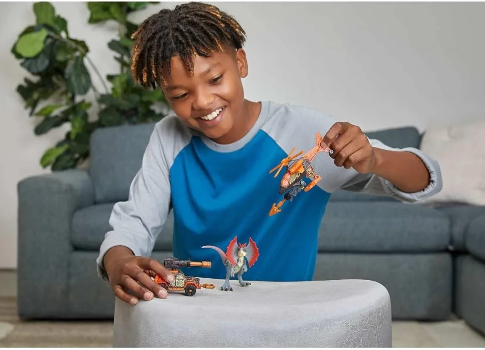 Com o Dino Strike, você descobre cinco partes do dinossauro em cada globinho, podendo encontrar ainda brinquedos super-raros, como veículos.