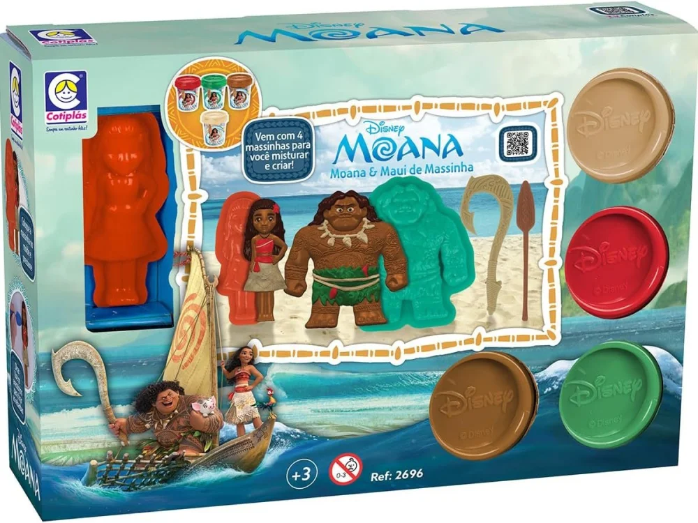Dê vida à aventura de Moana com nosso Conjunto de Massinha de Modelar Colorida! Entre no mundo mágico de Moana e seus amigos com este conjunto especial de massinha de modelar. Com cores vibrantes e textura suave, esta massinha proporciona uma experiência de modelagem emocionante para crianças de todas as idades. Moldar a Moana e seu amigo Maui e a tartaruguinha nunca foi tão divertido! Qualidade e Segurança Garantidas: Nossa massinha é cuidadosamente formulada para garantir qualidade premium e segurança total. É atóxica, livre de substâncias nocivas, tornando-a segura para crianças explorarem sua criatividade sem preocupações. Emoção e Aventura na Ponta dos Dedos: Deixe a imaginação correr solta enquanto as crianças recriam suas cenas favoritas do filme Moana ou inventam suas próprias histórias emocionantes. Com moldes dos adoráveis personagens e acessórios divertidos, cada momento de modelagem é uma aventura única. Desperte a Criatividade e a Diversão: Este conjunto de massinha de modelar não apenas proporciona horas de diversão criativa, mas também promove habilidades motoras finas, coordenação e imaginação. É o presente perfeito para qualquer fã de Moana que deseja trazer a magia da ilha para sua própria casa. Não perca tempo, traga a magia de Moana para sua casa hoje mesmo! Conteúdo da Embalagem: 4 Potinhos de Massinha nas cores: vermelho, cinza, marrom e verde. 2 Forminhas de Modelar: Moana e Maui 2 Acessórios para Brincar Recomendação: Crianças acima de 3 anos.