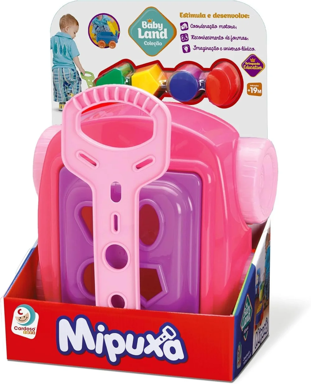 Carrinho de Puxar - Baby Land - Mipuxa - Rosa - Cardoso Toys: O Baby Land Mipuxa da Cardoso Toys é um brinquedo didático, lúdico e muito divertido! Desenvolvido para crianças na fase da primeira infância, ele possui diversas funções didáticas que auxiliam no desenvolvimento e aprendizado. é nessa fase que a criança mais precisa de estímulos para desenvolver suas aptidões. O Baby Land Mipuxa estimula a coordenação motora do bebê e a interação social, proporciona o conhecimento das formas e cores, além de estimular a imaginação e o universo lúdico. Os brinquedos da linha Baby Land foram projetados para uma brincadeira segura, confortável, educativa e alegre!