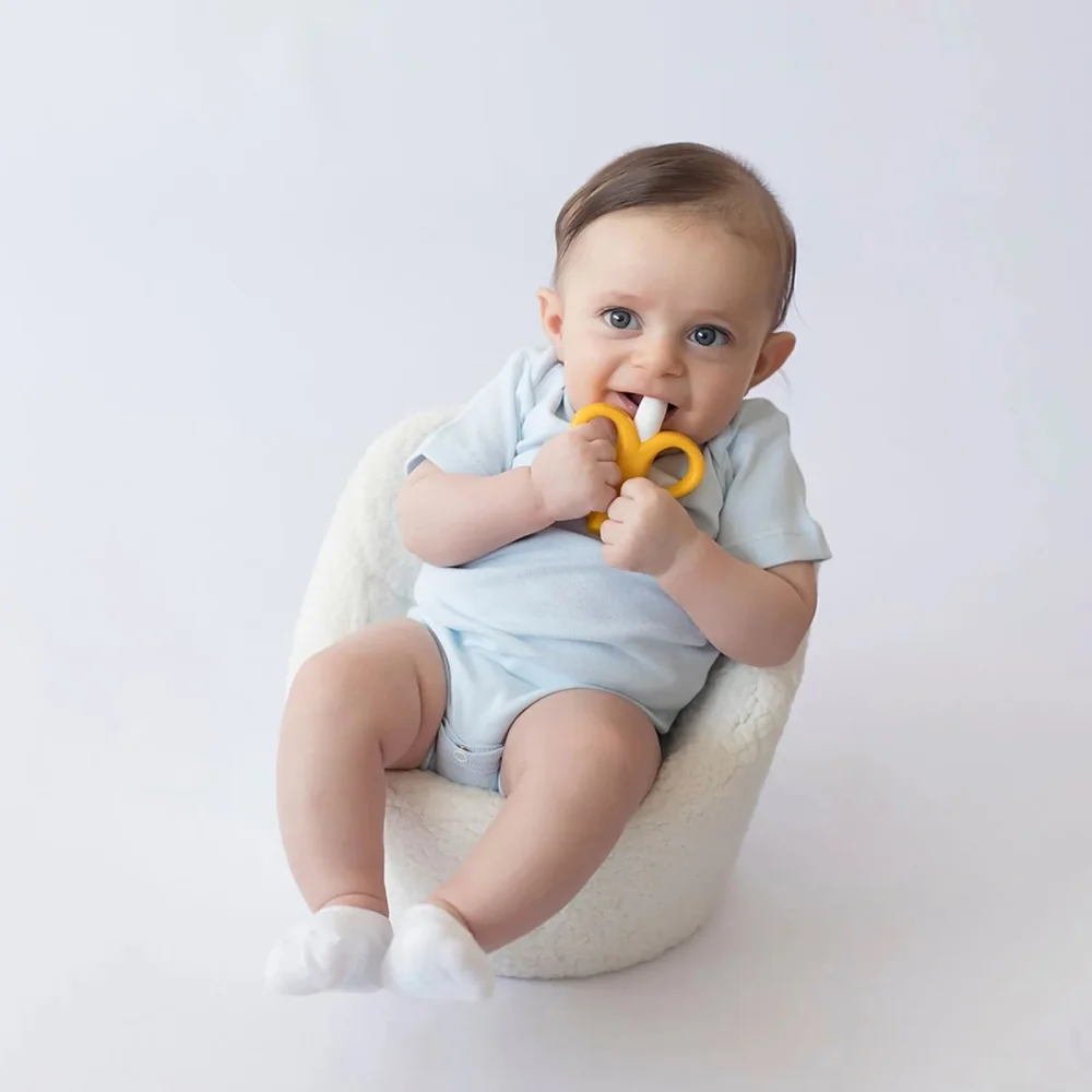 Resumo: Quando os dentinhos do bebê começam a nascer, vem o incomodo e a coceira. O massageador de gengiva auxilia no alívio dos sintomas além de estimular a saída dos dentes. Tem formato lúdico que torna o momento mais divertido e descontraído para o bebê. leia mais