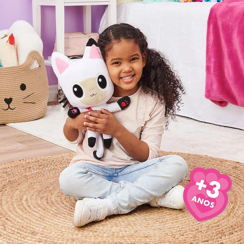 A pelúcia Talking Pandy Paws de 30 cm traz toda a magia de Gabby’s Dollhouse para perto com muita fofura e interatividade. Com detalhes bordados, orelhas pontudas, rabo adorável e sua icônica Pandy Pack, esse gatinho encantador é perfeito para momentos de diversão e aconchego. Ao apertar sua pata, Pandy Paws se ilumina e ativa músicas e frases do show, proporcionando uma experiência envolvente. Ele conta com duas músicas e 10 sons e frases, tornando cada brincadeira ainda mais especial. Com um toque supermacio e funcionalidade interativa, essa pelúcia é indicada para crianças a partir de 3 anos.